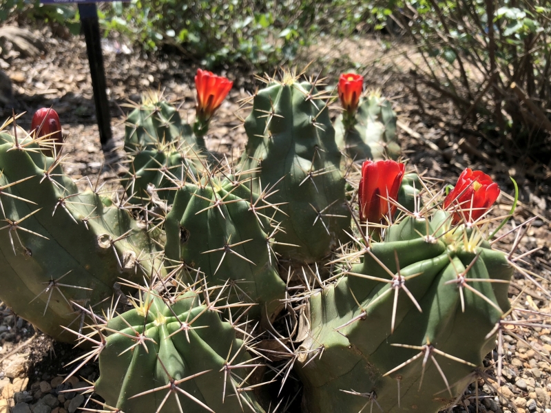 Claret cup cactus, Echinocactus triglochidiatus, Opuntia sp. ‘Little Monk’