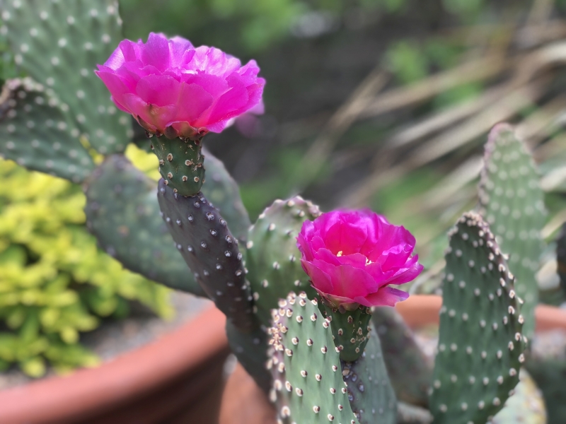 Opuntia polyacantha ‘Citrus Punch’ and Opuntia aurea ‘Coombe’s Winter Glow’