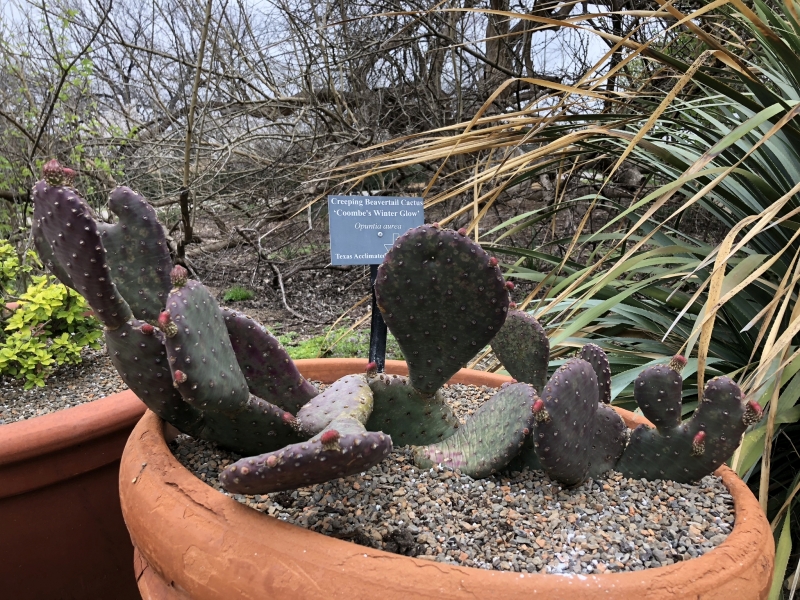 The TNPL is home to six species of prickly pear, and five of them are early growers. The photo series below shows growth from March to April. In addition to new pads and blooms (and fruit), you can also observe how several of the specimens lose their deep winter purple, returning to green pads during the growing season.